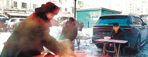 冬日里的中央大街,冰雕玉砌,灯光璀璨,热情的哈尔滨人纷纷为南方游客送上热饮暖身。单杰也想尽一份地主之谊。1月6日,他带领中央大街店的员工,为游客送上一份份免费板面,没想到一发不可收,原准备了1000份面,最后做了6000份才够。
