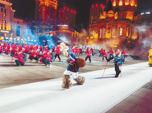 本报讯(记者 梁可心 文/摄)18日,由哈尔滨马迭尔文旅投资集团与波司登股份有限公司联合举办的“致敬冰雪”尔滨×波司登战略成果发布活动,在索菲亚景区举行。来自波司登股份有限公司的80余名模特,在时尚秀台上,全面展示尔滨×波司登战略合作成果。哈尔滨联名中国品牌服装企业,共同向海内外游客发出盛情邀请,欢迎全球游客在这个冬天“约会哈尔滨 冰雪暖世界”。