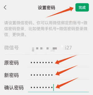 定期修改微信密码可增强微信账户的安全性,有效保护个人隐私和财产安全,那么微信密码该如何修改呢? 第一步:打开微信,依次点击页面右下方的“我”→“设置”按钮。 第二步:在“设置”页面点击“账号与安全”按钮。 第三步:在“账号与安全”页面点击“微信密码”按钮。 第四步:在“设置密码”页面输入原密码,填写并确认新密码,再点击面页右上方的“完成”按钮。 第五步:设置完成后,会提示“微信密码设置成功,以后可通过手机号+微信密码登录微信”,点击“确定”按钮即可。 □静心
