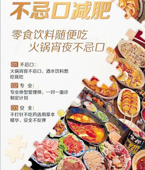 一款宣称有减肥功效的牙膏。 “当场减腰围2至5厘米”“减肥不忌口,火锅、奶茶都可以吃”“减重牙膏可有效抑制虚假食欲,让你刷刷牙就能瘦”;“21天狂瘦20斤,亲测有效”“一周暴瘦15斤,不运动不节食的懒人减肥法”……记者近日调查线上线下多家减肥机构发现,五花八门的“瘦身神器”层出不穷。一些机构通过制造身材焦虑、夸大宣传、伪造科技概念等手段,打出一条条“深入人心”的宣传标语,“俘虏”了不少减肥者的金钱与健康。