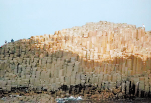 “巨人之路”位于北爱尔兰贝尔法斯特西北约80公里处的大西洋海岸的断崖下,形成于6000多万年前的一次大规模的火山喷发,大量熔岩流入海中,经过海水的冷却和凝固,形成数万根有棱有角的石柱。
