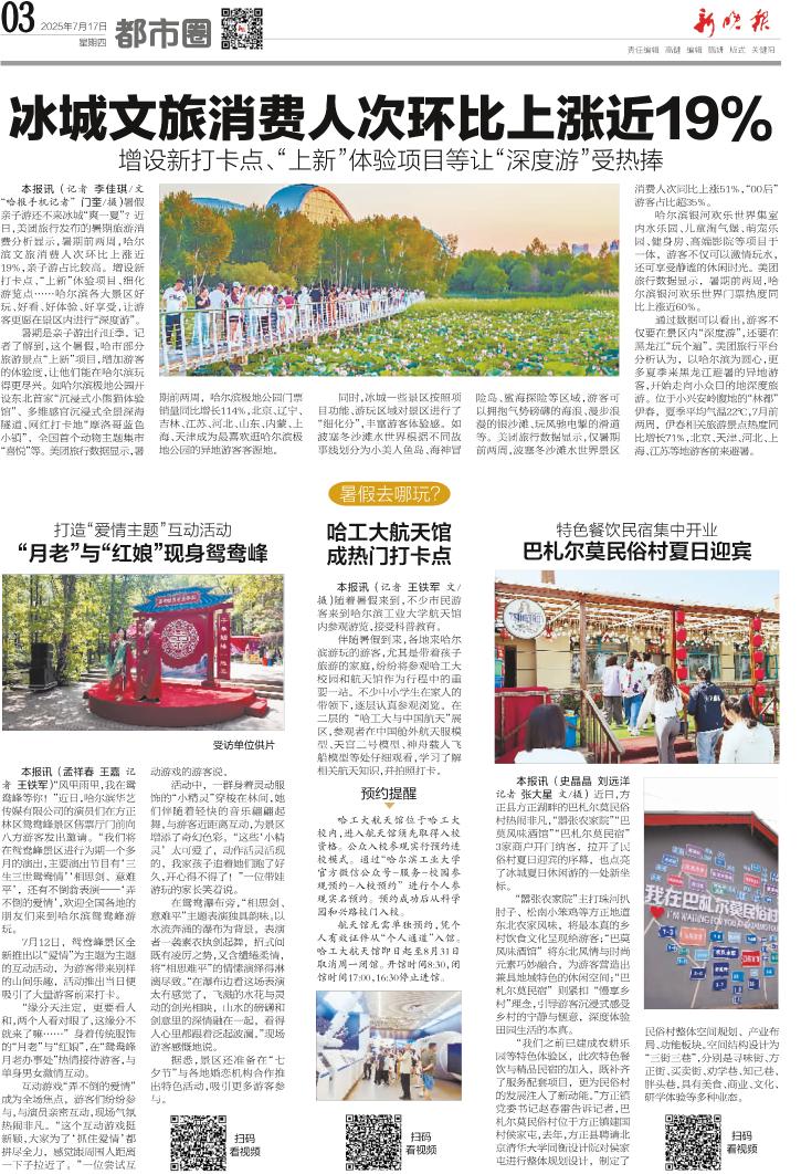 冰城文旅消费人次环比上涨近19%