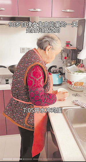 “90岁‘自律女生’高能量的一天是如何度过的?”清晨起床煮早餐、磨豆浆,深夜凌晨仍发面蒸馒头、腌酸菜,或是外出投喂流浪猫。从早忙到晚持续超17小时,不仅能手脚麻利地完成砍芋头、手洗厚被、水缸接水等重活,还精通榨汁机、电磁炉等家电操作。