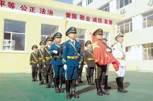 靖宇小学举行升旗仪式。 □本报记者 周雪莉 梁潇 郑炜