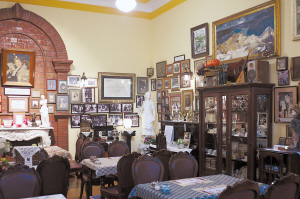 走进餐厅,浓厚的历史感扑面而来。正中墙壁悬挂着俄国画家1906年创作的、店主人曾外祖母的油画像;四周墙壁挂满哈尔滨早期开埠的原版历史老照片;店内展示的1889年法国名琴,曾被店主人母亲好友妮娜的妹妹弹奏过。这些陈设复原了当年俄式餐厅的风貌,也让这里成了影视创作的绝佳背景。
