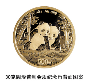 30克圆形普制金质纪念币背面图案 本报讯(记者 李佳琪)近日,中国人民银行发布公告,定于10月31日发行2026版熊猫贵金属纪念币一套。值得注意的是,此次发行的熊猫币背面图案延续了熊猫家族的“故事”,过去的熊猫宝宝长大了,还有了“伴侣”。