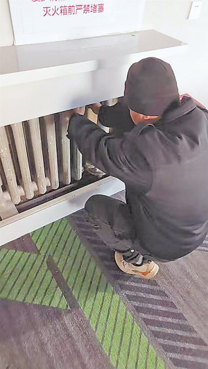 针对居民的咨询,供热公司维修人员在桥北小区上门排查时发现,该户居民家的暖气片被定制木质柜体完全包裹,仅两侧留有狭小缝隙。