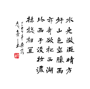 书法 作者 袁志亮 水光潋滟晴方好 山色空蒙雨亦奇 欲把西湖比西子 淡妆浓抹总相宜