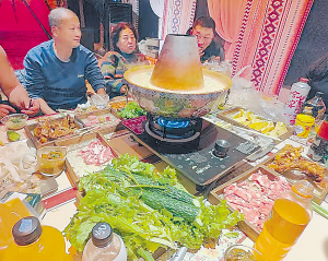 记者走进一顶使用面积约80平方米的大帐篷,立刻被里面的布置吸引了。波西米亚风格的天幕挂布搭配满天星灯饰,氛围感直接拉满;角落里的自动投料取暖炉,能为300平方米的空间持续供暖;卡拉OK机、麻将桌等娱乐设施一应俱全,无论是想放声高歌还是好友小聚,都能找到合适的方式。而围炉煮茶、雪地火锅、雪地家庭派对等专属项目,更让游客在冰天雪地里,既能体验冬日特有的乐趣,又能感受到满满的暖意。
