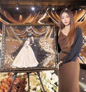 哈尔滨师范大学油画专业毕业的她,曾有过多年婚礼策划的从业经历。“当时一个国外的朋友要在哈尔滨办婚礼,她说在国外很流行婚礼现场绘画,但在国内找了很久都没找到合适的人。”曹政回忆,朋友的信任让她决定尝试这个从未涉足的领域,“我本身是学油画的,又了解婚礼的各个环节,或许真的能做好。”