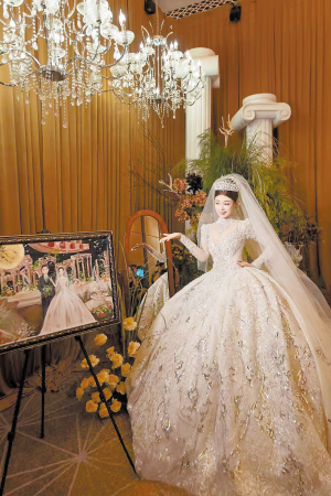 在黑龙江大学附近一个画室内,记者见到了曹政。画室内挂满了她的油画作品,此时她正在为一对新人讲解油画的风格。片刻后,曹政笑着告诉记者:“我会提前参与婚礼前期策划,再置身浪漫的婚礼现场,用画笔为新人的幸福时光备份。”她说,油画立体感强,适合写实,稳定厚重的颜料能够长时间保存,整体风格高级感强,对得上年轻人的口味。