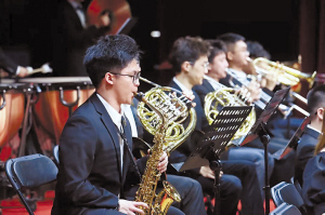 商学院2019级博士生宋宇石仍记得大一刚到交响乐团时的情景。原本吹中音萨克斯的她,听说低音声部缺人,立刻从家中取来低音萨克斯,代替大提琴声部演奏,这一替,成就了她在低音声部的“专属岗位”。
