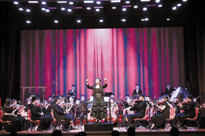 2023年“雪韵交响”冬日音乐会上,田世英老师指挥全场观众合唱。