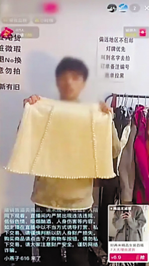 来自北京的陈佳(化名)告诉记者,这类直播间的主播通常会声明衣服“默认微瑕”且不退不换。“我曾买到过起球的毛衣,有一条裤子口袋里还有私人物品,感觉像是二手衣物,但这些信息直播间主播从不主动说明。”