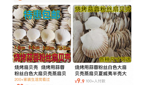 记者在淘宝搜索发现,售卖“烧烤专用扇贝壳”的店铺超过50家,颜色涵盖红、黄、白等多种色系,规格从6-8厘米到10-12厘米不等,最便宜的折算仅4分钱一片。某热销店铺显示,其10-12厘米的白色扇贝壳月销超2000单,客服向记者表示,均为天然贝壳,使用之前浸泡几分钟再洗刷干净即可。