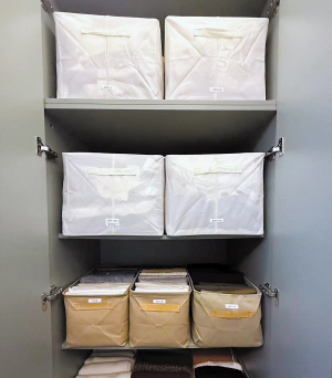 专业的收纳服务是从细致的预采开始。接到订单后,吴梦瑶团队会先花1—2小时上门预采,简单看下物品数量和放置的位置,跟客户聊聊生活习惯。预采结束后,团队会回到公司提出专属方案。正式整理时,衣物收纳是最考验功夫的环节:先按季节把衣物分成春夏秋冬四堆,过季的叠好装入整理盒里节省空间,当季衣物再按薄厚分类,最后按颜色排序,同色系的衣服横向排列,从浅到深像彩虹一样铺开……“这样找衣服一目了然,想穿蓝色衬衫,扫一眼就知道在哪。”吴梦瑶说,她们也会在收纳盒外侧贴上文字分类标签,让老人能够轻松找到。