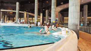 作为榜单“顶流”的枫叶小镇温泉度假区,人气尤为火爆,满载俄罗斯游客的旅行大巴络绎不绝。景区每日接待千余名游客,俄罗斯游客占比高达半数。温泉区,随处可见金发碧眼的游客,他们或在科技感十足的水疗设备前驻足体验,或在网红鸳鸯火锅池边拍照打卡,不时发出阵阵惊叹。