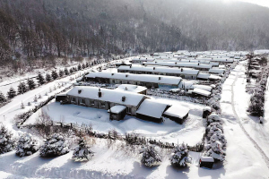威虎山雪村主打“原生态”冰雪本真之美。降雪期长达半年之久,年均降雪量达2米,黏稠的雪质经大自然雕琢,幻化成形态万千的雪檐、“雪蘑菇”等独特景观。踏入原始“六十四户”观景区,错落有致的木屋被厚厚的积雪掩至屋檐,一串串黄玉米、红辣椒如彩带般悬挂在屋檐下,与皑皑白雪映衬,勾勒出一幅充满林区旧时光风情的温馨画卷。游客还能参与滑雪、雪圈、雪地摩托、马拉爬犁等冰雪娱乐项目,感受东北民俗的烟火温情。