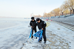 近期,随着哈市气温逐渐降低,松花江即将进入封冻期。冬季江面冰情复杂,看似坚固,实则暗藏风险,极易发生坠冰落水事故。为保障广大市民游客人身财产安全,自封江通告发布之日起,禁止一切车辆及行人在松花江哈尔滨段冰面通行。请广大市民游客积极配合民警工作,共同维护哈市冬季江上安全。