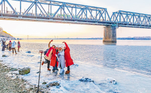 随着冰雪季的到来,哈尔滨旅游逐渐升温,不少游客来到松花江畔打卡拍照。