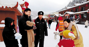 游客向民警表示感谢。 本报讯(金玉蕾 记者 王铁军)11月21日,省林区公安局大海林分局冬季护游民警在雪乡景区巡逻途时,突然接到一名外地游客的紧急求助,称其随身携带的手机不慎遗失,内有重要的个人信息及资料,十分焦急。