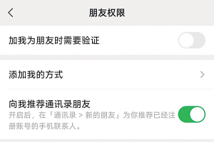 玩转App 现在,微信已经成为人们不可缺少的通信工具。在微信中,除了通讯录中的好友、同事能看到用户外,一些不法分子也能看到,添加用户为好友后,伺机行骗。因此,用户最好将一些有安全隐患的功能关闭,以有效保障微信账号安全。 打开微信首页,依次点击页面右下方的“我”→“设置”→“朋友权限”→“添加我的方式”按钮。 将页面中的功能开关全部关闭即可。 □荷叶