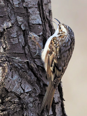 旋木雀别名“爬树鸟”,白天活跃,夜间结群而居,有垂直向树干上方爬行觅食的特殊习性,即绕着树一圈一圈呈螺旋状往上转,所以叫旋木雀。它们主要取食树皮缝里的虫或虫卵,还有蜘蛛等。它们擅长在树干上垂直攀爬,往复不停,性情十分活跃,每天活动时间可长达10多个小时。旋木雀的到来,为冬日的兆麟公园增添了活力。