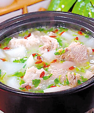 2.萝卜炖羊肉。将羊肉切块、冷水下锅,放入姜片、料酒去膻,煮沸后捞出。将汆好的羊肉放入汤锅,加入足量开水和少许八角,大火烧开后转小火慢炖。白萝卜切滚刀块,放入锅中,继续炖煮20-30分钟。出锅前2分钟加入枸杞,最后放入适量的盐、胡椒粉、香菜调味即可。