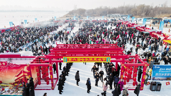 今年采冰节现场不仅设置了表演区和采冰区,还创新性地融入了非遗展示区和美食集市,提升了市民游客的体验度。本报记者 刘洋 摄