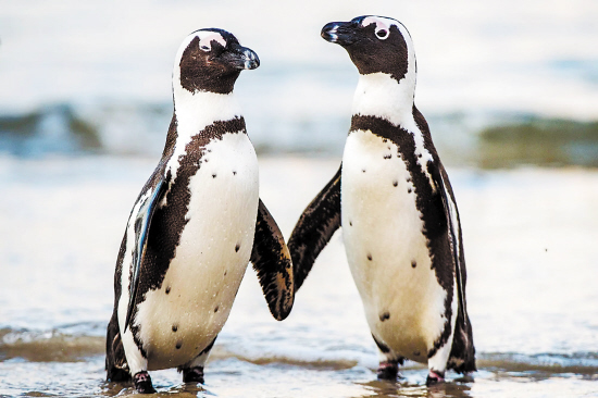 非洲企鹅学名为斑嘴环企鹅,是唯一一种分布于非洲的企鹅。2023年,非洲企鹅的全球繁殖对数量首次跌破1万对,促使世界自然保护联盟在2024年将其列入濒危物种红色名录,评级为“极危”。