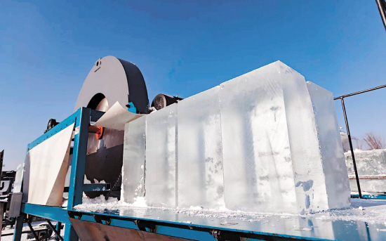 这两台被工人称为“型冰机”的设备,是哈尔滨冰雪大世界与哈尔滨工业大学产学研合作成果。哈尔滨工业大学机电工程学院教师代勇介绍,“型冰机”可有效保障冰砌块的平整度与垂直度,切削效率提高至原来的3倍以上。这不仅能够缩短冰景观的建造周期,还可进一步提高冰建景观的砌筑质量,增强其抗风化性能,延长景观使用寿命,提供更持久的服务。