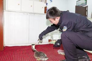 考虑到幼鸟需要更专业的救治与养护,民警驱车将其送往野生动物救助站,由专业人士妥善安置。目前,这只凤头鸊鷉已在救助站接受专业救治与野化观察,等明年开春养得膘肥体壮,就能重返大自然继续飞翔。