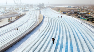 目前,第二十七届哈尔滨冰雪大世界网红核心项目——超级冰滑梯完成冰建施工,已进入细节修正与全滑道试滑检测阶段。本届超级冰滑梯亮点十足,共设置24条滑道,其中最长滑道长度达521米,总用冰量累计15000立方米。为确保滑行安全流畅,13日起安全管理与专业试滑人员已全面上岗,按规范开展全流程检测。先逐一排查每块冰体接缝平整度,通过水与冰屑黏合找平;再对滑道进行精细打磨,清理残留碎小冰屑,最大限度保障滑行稳定性,从基础硬件层面规避安全隐患。