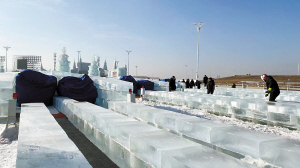 记者在现场看到,无论是恢弘的大型冰建,还是精巧的互动冰雕小品,只要有冰台阶的地方,都整齐铺设了一层白色防滑地垫。这一贴心设计,让游客与冰建近距离接触时,完全不用担心上台阶时滑倒。