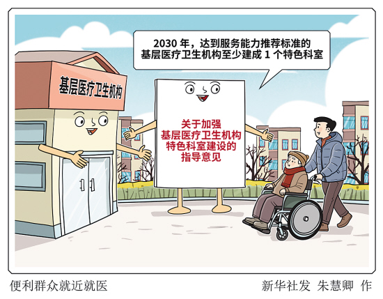 根据国家卫生健康委、国家发展改革委等6部门17日公布的通知,2030年,达到服务能力推荐标准的基层医疗卫生机构至少建成1个特色科室。鼓励其他基层医疗卫生机构结合实际建设特色科室,便利群众就近就医。