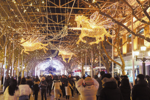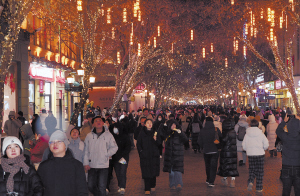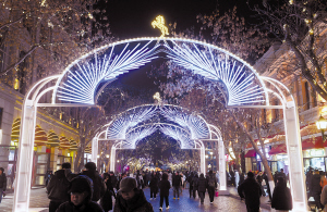 本报讯(记者 刘姝媛/文 刘洋/摄)12月18日晚,中央大街创意灯饰景观全面呈现。这场以科技为笔、光影为墨的视觉盛宴,在银装素裹的冬季如约登场,为这条百年老街注入全新活力,让市民与游客在冰雪世界中邂逅欧陆风情的浪漫。
