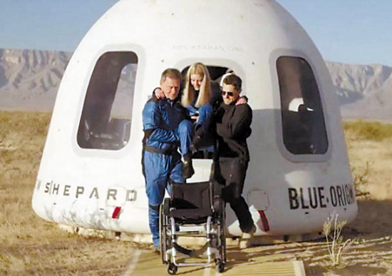 美国蓝色起源公司的“新谢泼德”飞行器20日在一次载人太空飞行中,把6名乘员送入太空,其中包括一名截瘫女性,她也成为首名进入太空的“轮椅使用者”。
