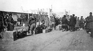 早年间在哈尔滨火车站揽活的脚行搬运工人。