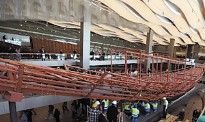 23日,古埃及法老胡夫的第二艘太阳船组装工作在大埃及博物馆启动。随着首块修复完成的木板被安装至专用骨架上,位于大埃及博物馆胡夫太阳船展厅内的修复工程正式展开。埃及旅游和文物部长法西称,该项目为“21世纪最重要的文物修复工程之一”。