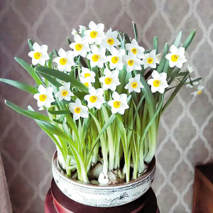 为了使水仙植株壮实,可在栽植前,用1片阿司匹林兑成的1000倍液浸泡鳞茎或芽基30分钟。也可选择1000倍液生根剂浸泡,或用2000-3000倍液生物肥洗根。