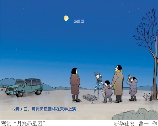 12月31日晚,一场天象大戏——月掩昴星团将在天宇上演,陪大家一起跨年。专家介绍,由于月光很强,掩盖了昴星团中星星的光辉,感兴趣的公众最好是借助小型天文望远镜或双筒望远镜进行观测或拍摄。