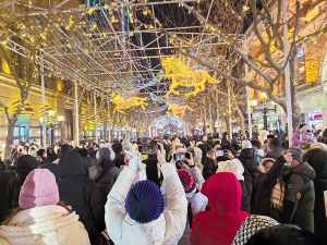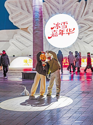 冰雪景观点燃跨年激情。2025年最后一晚,哈尔滨各处流光溢彩,精美的冰雕雪塑、璀璨的灯饰景观与跨年迎新氛围交织,吸引大量市民游客出门游玩。相拥合照的身影随处可见,年轻情侣额头相抵,中年夫妻牵手依偎,为跨年夜增添了满满的暖意。
