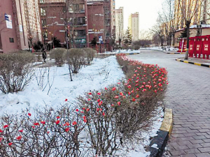 本报讯(本报记者)近日,哈尔滨致中现代物业服务有限公司管理的玫瑰湾智园、玫瑰湾珑岸、玫瑰湾一期、康泰嘉园、福汇东方、东方庭园等多个小区,打破冬季绿植凋零的单调感,物业工作人员将一朵朵仿真度极高的红色蜡梅花错落嵌入道路旁的低矮灌木丛中,用低成本为业主打造冬日景观。