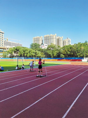 “重心压低,膝盖微屈,转弯时注意发力点!”每次雪季实战训练,张宇都会一边观察队员的动作,一边及时纠正细节。遇到技术难点,他便亲自示范,踩着自己的旧雪板,在雪道上滑出标准的轨迹。雪季的训练争分夺秒,非雪季的备战同样毫不松懈。学校的体育馆里、操场上,总能看到滑雪队队员的身影:他们进行体能训练,长跑、深蹲、核心力量练习,为雪上运动打下坚实基础;开展模拟训练,踩着滑轮板在地面上练习滑行技巧,模仿雪上转弯的动作要领……张宇还会组织队员们观看比赛视频,分析技术动作,分享自己2022年入选北京冬奥会、冬残奥会技术官员团队时的经验,将世界顶级赛事的宝贵经验与前沿理念融入日常教学,为队伍训练注入了“冬奥标准”的科学基因。