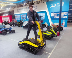 据介绍,该产品最初基于电动滑板车设计,但突破了传统产品仅适用于平坦路面或雪场的限制。为满足日益增长的户外动力与越野需求,公司创新研发出这款采用双履带、双电机结构,并以三元锂电池为动力的新能源滑板车。其操控方式十分独特,主要依靠身体摇摆来调整方向,原理近似平衡车,在雪地、沙地等复杂地形上行驶起来,感受格外新奇刺激。