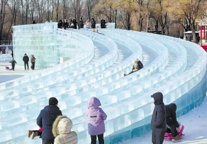 孩子们排队等待,家长们在终点张开怀抱,年轻人在滑行中释放欢叫……这座闪耀的冰滑梯不仅滑出了冬日的速度与激情,更滑出了一座城市温暖鲜活的生活气息。