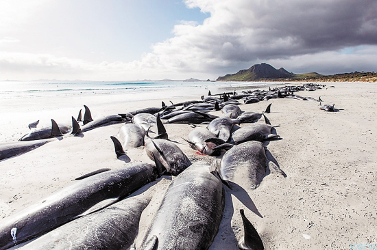 新西兰环保局发布的最新公报说,在新西兰南岛北端的费尔韦尔沙咀海滩发生领航鲸群体搁浅事件,经过相关人员的解救后仍有15头领航鲸搁浅。