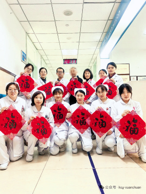 出院后的张先生,心里一直惦记着那群曾照顾过他的医护团队。春节快到了,他再次回到这个曾帮他渡过难关的地方。这一次,他手里拿的不是病历,而是厚厚一沓亲手写下的“福”字。那一幅幅大红纸上的“福”字,在病房里显得格外亮眼。张先生把这些包含着心意的“福”字送到每一位医护人员手中,还和大家一起合影。医护人员表示,这一纸“福”字,承载的是彼此的一份信任。