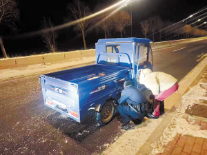 当晚22时30分,方台派出所民警巡逻至城郊路段时,发现远处“一人一车”孤零零停在路边,民警快速接近查看情况,只见一名女子正焦急守着一辆电动三轮车。“刚走一半,电瓶被冻没电了……”原来,王女士驾驶电动三轮车途径偏僻路段时,没想到电瓶因气温过低突然“罢工”。附近几公里内既没有修车点,也打不到车,一时陷入困境。了解情况后,民警俯身检查车辆状态,将车推至安全区域,并协助联系了修车师傅。“这大冷天,多亏遇见了你们。”看着民警忙前忙后,王女士发自内心地不停感谢。