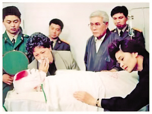 陶玉玲(左二)在哈尔滨参演电影《炮兵少校》。